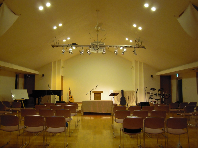 千葉県四街道市の自然に囲まれた住宅街に2009年めぐみの丘チャペルが献堂されました。2階立ての御堂は一階がキッチンと集会室、二階に礼拝堂と牧師室があります。