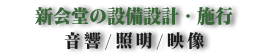新会堂に於ける音響設計・既存システムからの増設など。音響システムの導入を専門家の立場からアドバイス致します。キリスト教会のチャペルコンサート・ホール音響、あらゆる集会の音響を業務としてきましたので、又、クリスチャンならではの各教会の礼拝形式等も心得ておりますので、一般の音響業者では理解できない教会の必要性を知っています。設計・施工全般 各種ご相談を承ります。